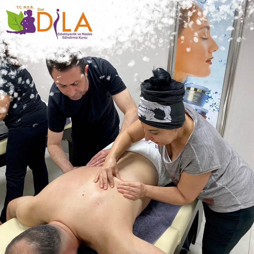 MEB onaylı Masaj Kursu'muz toplamda 3,5 ay sürmekte ve %80 uygulamalı olarak işlenmektedir. Anatomi, fizyoloji, aromaterapi gibi temel teori dersleri sonrası vakit kaybetmeden uygulama derslerine geçilmekte ve öğrencilerimizin el pratikleri geliştirilmektedir. Uygulamaları birçok kez tekrar etme fırsatı bulan öğrencilerimiz sektöre hazır halde mezun olurlar ve kurs sonrası hemen çalışmaya başlayabilirler.